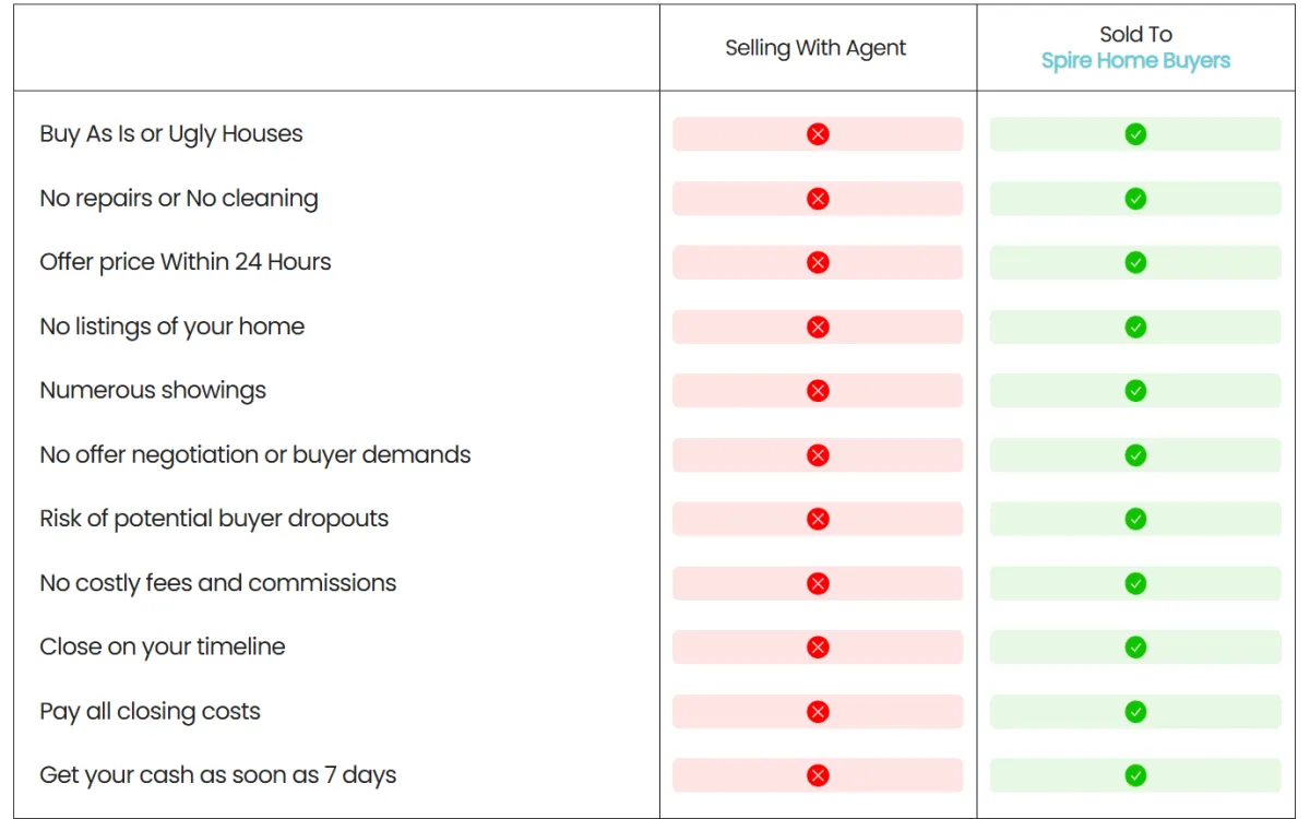 Selling to Spire eliminates the typical hassles of listing, showings, and waiting for financing approvals. With us, you can enjoy a fast and hassle-free transaction, bypassing all the complexities of traditional real estate processes.
